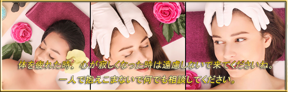 当店では、アロマオイルの効能と当店自慢のセラピストによるリンパマッサージの相乗効果による、癒しのひとときをお客様お一人お一人にお届けしております、自然で心やすらぐ優美な香りを、施術中はもちろんご帰宅お休みになってから翌日朝目覚めでまで楽しんで頂けます、どうぞゆっくりご堪能ください。